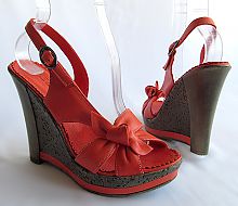Босоножки Женские летние, верх - полностью из натуральной овечьей кожи - шевра оранжевого цвета; на высокой танкетке из полиуретана. Комфорт и изящность сочетаются в этом босоножке. Колодка очень удобная. Подходят под любой летний наряд в жаркую погоду. "Идут" размер на размер.