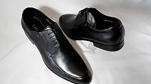 Новая модель! Туфли мужские классические; верх изготовлен полностью из натуральной овечьей кожи черного цвета, с выделенной кокеткой переходящей в боковой рельефный шов, придающий данной модели красивую форму; на двух шлицах для удобства одевания и ходьбы, на шнурках. Подошва - из плотного полиуретана, похожего на кожу по свойствам эксплуатации. Смотрятся аккуратно, подходят под любой классический костюм, а также под любые другие брюки. Пошиты по эвропейской колодке и "Идут" на полный размер ноги.