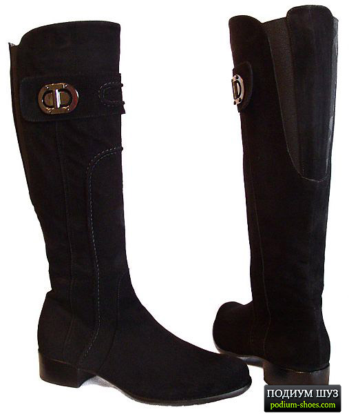 Сапоги женские зимние из натуральной чёрной замши, внутри - евро-зима. т.е. натуральная овчина в ботиночной части, а в голенище подкладка из натуральной кожи. Голенище декорировано выстрачкой и ремешком на пряжечке. Для большего комфорта с задней стороны вшита эластичная вставка из широкой резинки. С внутренней стороны - на молнии.Подошва из полиуретана и широкий каблук специально для носки в зимнее время и очень модны в этом сезоне. "Идут" на полный размер, на средний подъём.Произведены на итальянской фабрике ""Franceaca" (оригинал).