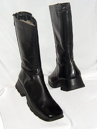 Сапоги женские зимние с натуральным мехом овчины внутри, имеют форму напоминающую "милитари" за счёт "брутального" квадратного носочка и расширенного каблука. Верх - из натуральной лицевой кожи телёнка, голенище высотой 3/4, можно подтянуть шнурком с зажимом сзади. Подошва утолщенная полиуретановая, лёгкая, на горячей склейке, не пропускающей воду и снег, не скользит. Эти сапоги "любят" молодые девушки- подростки и девушки, носящие джинсы во-внутрь. Сделаны очень качественно, идеально подходят для нашей снежной зимы. На зиму 2016-17 года в моде обуви появляется квадратный носочек (Цена снижена от 170 евро). (Италия).
