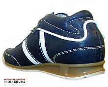 Полуботинки мужские типа кроссовок из натуральной кожи оленя тёмно-синего цвета, на каучуковой подошве с полиуретановым белым покрытием. Декорированы белой кожей, белой строчкой и белыми шнурками. Внутри - подкладка из натуральной кожи. Подходят под любую спортивную одежду и под джинсы. 40размер - полный.