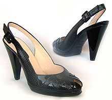 Туфли летние- высокая мода, полностью из натуральной кожи кенгуру,покрытой натуральным лаком, с открытым пальчиком и пяткой, на платформе 13мм, перёд и боковинки декорированы вшитыми вставками из теснённой лаковой кожи, каблук -10см (учитывая платформу-меньше),но его высота не ощущается за счёт комфортной колодки. Закруглённый носочек и форма колодки делают ножку миниатюрной - очень сильно "уменьшают" её зрительно именно в этих летних туфельках.Показанный на фото 37р -на ножке кажется как 36р., а ножке 37р. очень комфортно.Очень лёгкие, с отлично-выделанной кожи.Произведены в Италии - Венеция.